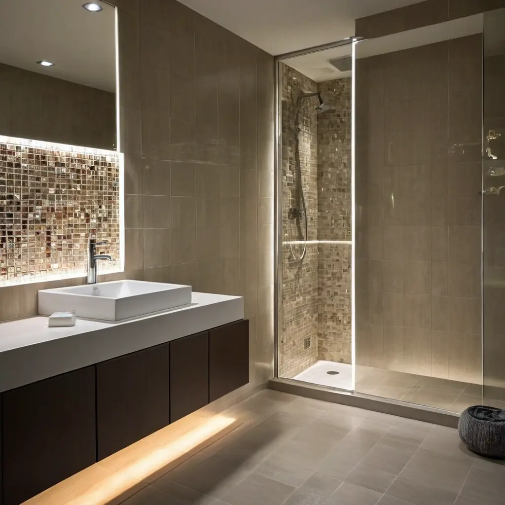 «Мозаичная плитка с LED-подсветкой — это не просто элемент декора, а инструмент для создания атмосферы и повышения функциональности ванной комнаты. Важно выбирать качественные материалы и продумать систему управления освещением, тогда эффект превзойдёт ожидания. Такой подход позволяет сочетать эстетику с комфортом, делая ванную комнату действительно уникальным и приятным пространством.»