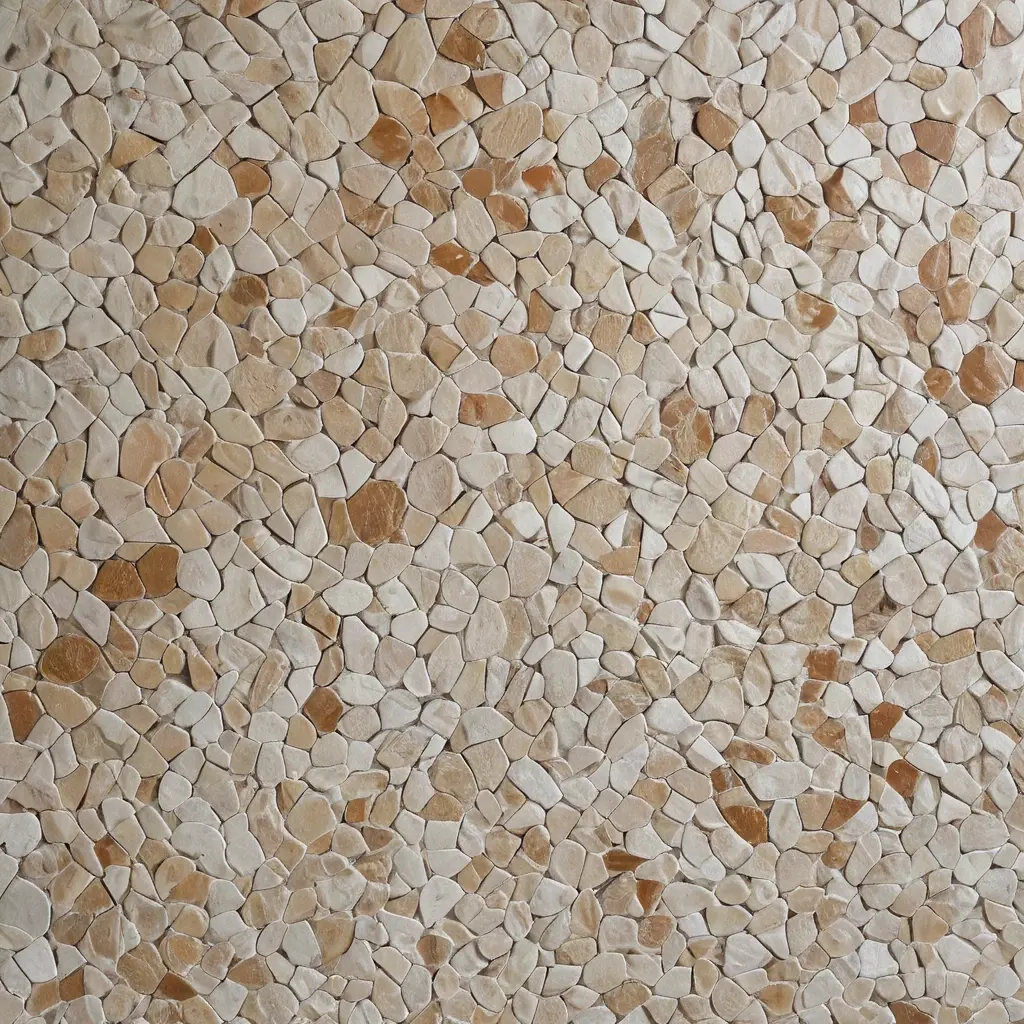 - Эстетическая привлекательность. Мелкая каменная крошка создаёт уникальную текстуру и разнообразие оттенков, имитируя природные мозаики.