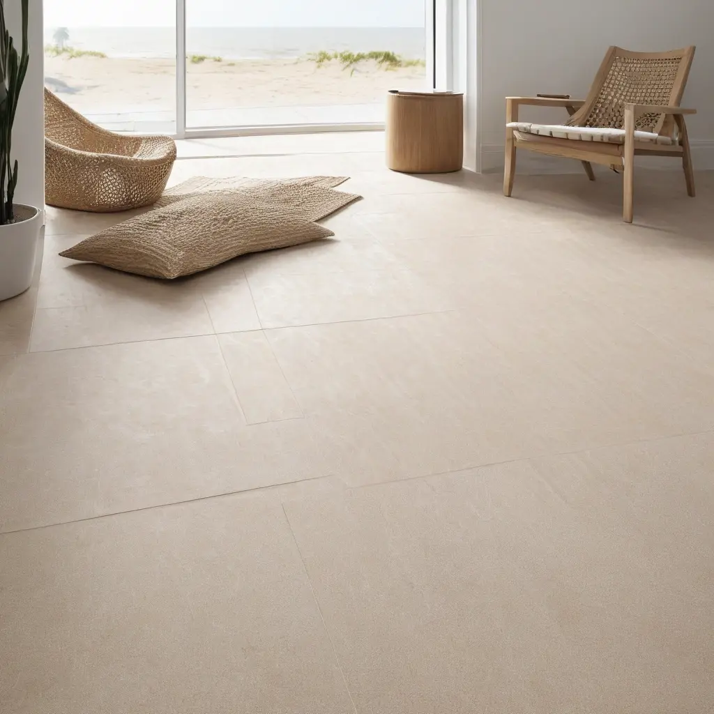 Напольное покрытие с эффектом песка — это инновационный материал, который визуально и тактильно напоминает песчаную поверхность пляжа. Оно позволяет создать в интерьере необычную и приятную атмосферу, способствует расслаблению и поддержанию настроения отдыха даже в городской квартире.